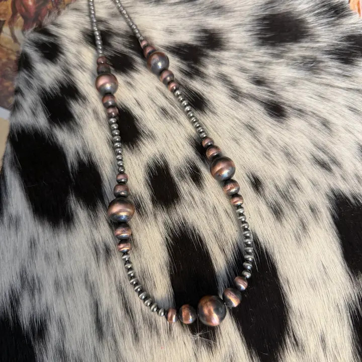 Introducing graduated Copper Pearls mixed with Sterling Silver Pearls! Designed to catch the light and elevate any look. Rustic Warmth mixed with classic elegance; this combination offers the effortless sophistication with a distinctive edge.
