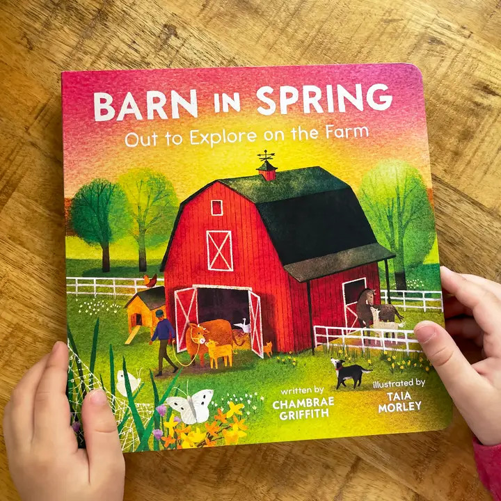 “Barn feels the sun. Warmth floods her gables. As winter retreats, she opens her stables…” It’s springtime on the farm, and the animals (and their new babies!) are ready to get out of the barn and explore. The cows are happy to graze in the green pasture, the hen is busy at work building a nest, and the happy-go-lucky pigs have found a mucky mud puddle to wallow in! Celebrate spring with this beautiful keepsake book that any farm-loving toddler is sure to love! Lyrically written in rhyming verse with gorgeously rich illustrations. Look for the companion book by Chambrae Griffith, Barn in Winter, available now and check out the wide variety of other children's board books from Cottage Door Press!