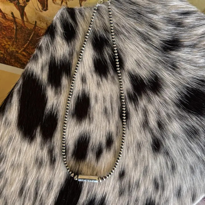 Barrel bead center focus necklace, with 3/4mm sterling pearls to accent the center bead. **Barrel bead stamping and patterns MAY VARY.