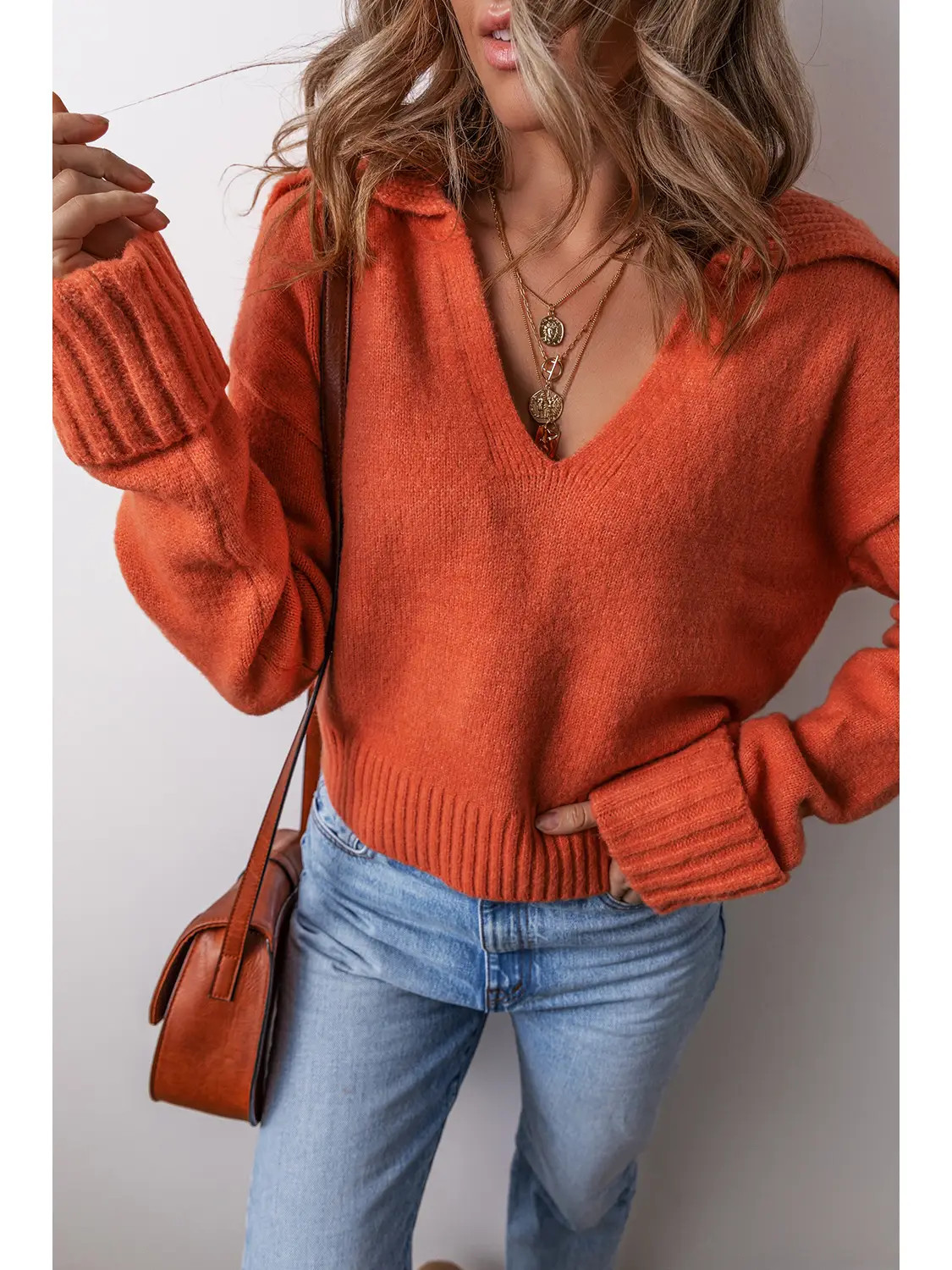 ? Collared V-neck delivers a chic, alluring touch to this sweater. ? Ribbed edges add structure and cozy comfort. ? Drop shoulder design creates a relaxed, casual vibe.