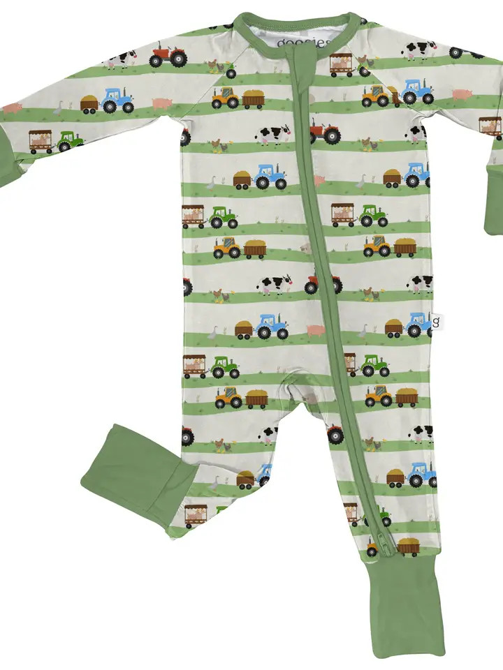 These Zip Pajamas feature a two way zipper, convertible feet and scratch mitts for sizes 0-3 months and 3-6 months.