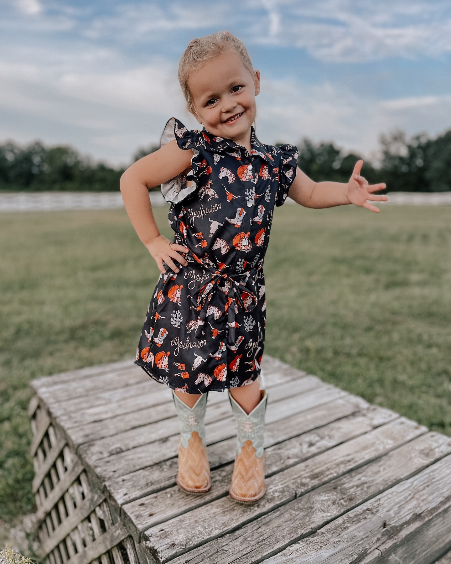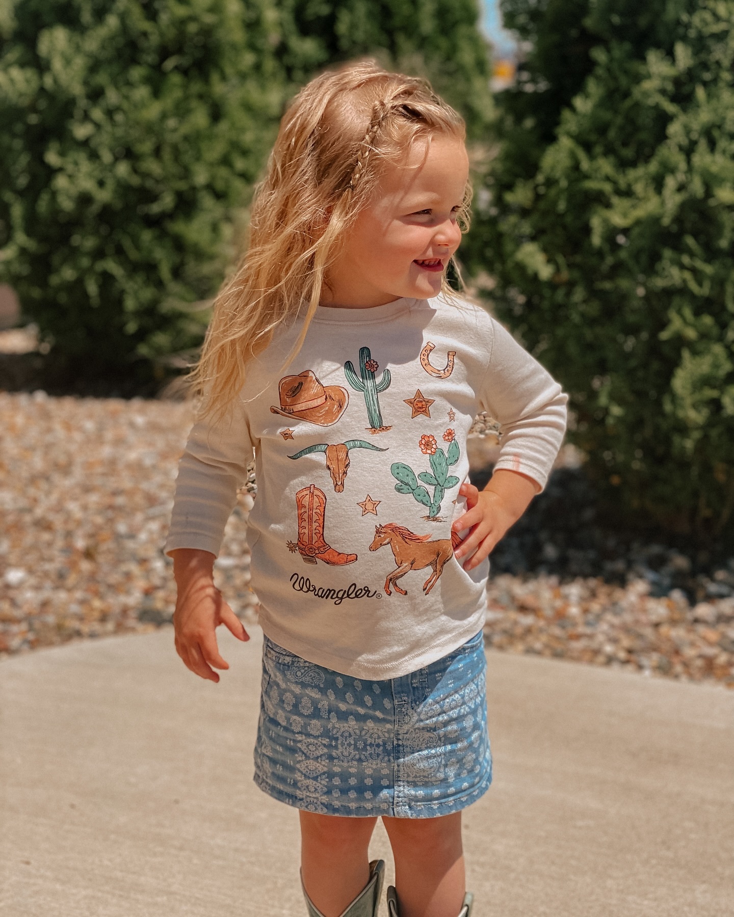 WRANGLER Choose Options WRANGLER HORSESHOE DENIM DRESS FOR TODDLERS MSRP: Was: Now: $24.00 DRESS CODE: DENIM ONLY She'll look darling in our Little Girl's Denim Trapeze Dress. It's crafted f…