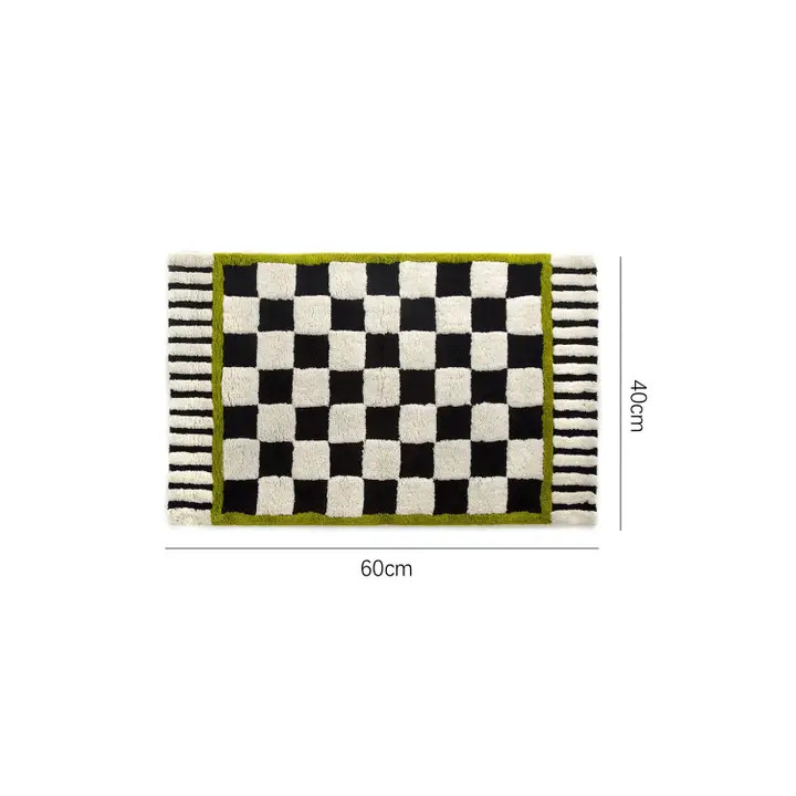 Material 100%Polyester Style Casual Pattern Plaid Occasion Home Season F/W Ultra-soft plush rug feels soothing and therapeutic. Trendy checkered pattern with bold contrast trim. Made with wool-spun material for extra fluffiness. Sized 40*60cm—ideal for bathroom, bedroom, or kitchen. Elevate any space with our must-have wholesale accessory.