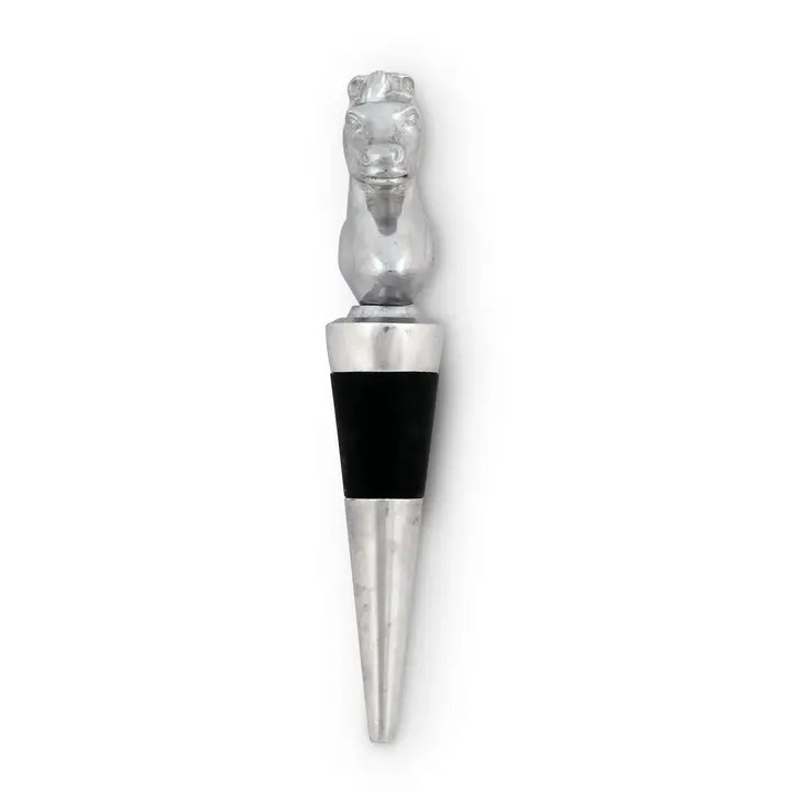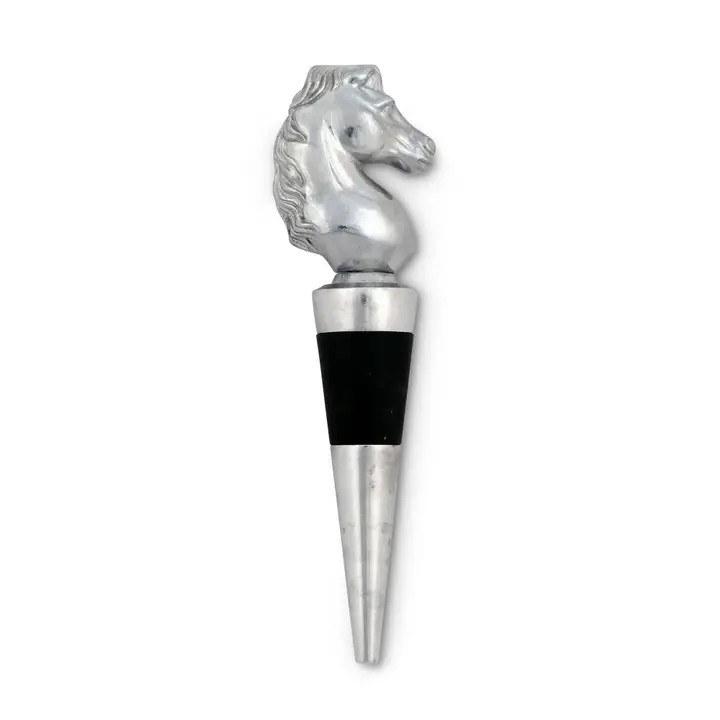 Turn every glass of wine into a special occasion when you stopper your bottles with this dramatic horse bottle stopper from Arthur Court. This elegant statuette comes in a gift box that makes it perfect as a hostess gift or special present for the equestrians and horse lovers in your life, and your friends will appreciate the substantial and high-quality feel when they hold it. Show it off among your crystal decanters and fine wine collection, trusting in the incredibly tight fit of the rubber gasket to protect your wine. The nobly shaped head of this stallion and its flowing, graceful mane are handcrafted in sand-cast aluminum, all the better to show off the realistic detailing of the design.