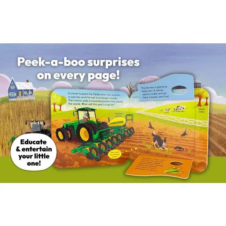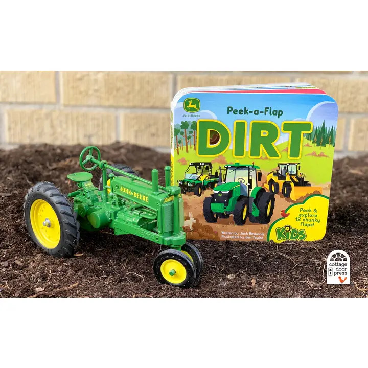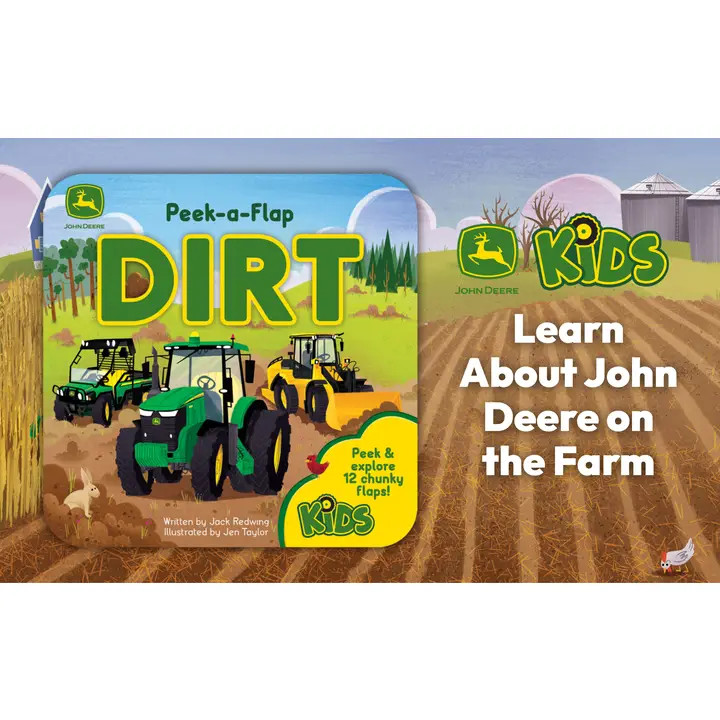 Nothing runs or reads like a John Deere Peek-a-Flap book! Introduce your kiddo to all things dirt with this sturdy board book filled with tractors, trucks, and fun dirt facts designed to educate and entertain your little John Deere enthusiast. Peek and explore farms, forests, and more on every page filled with peek-a-boo surprise flaps. A perfect gift for the little John Deere fan in your life! John Deere Kids children’s books recognize that the preschoolers of today are the farmers, builders, and innovators of tomorrow. Content and formats are based on the legacy of a long-loved company that encourages kids to play in backyards, dig in the dirt, get muddy, and learn where food and shelter come from.