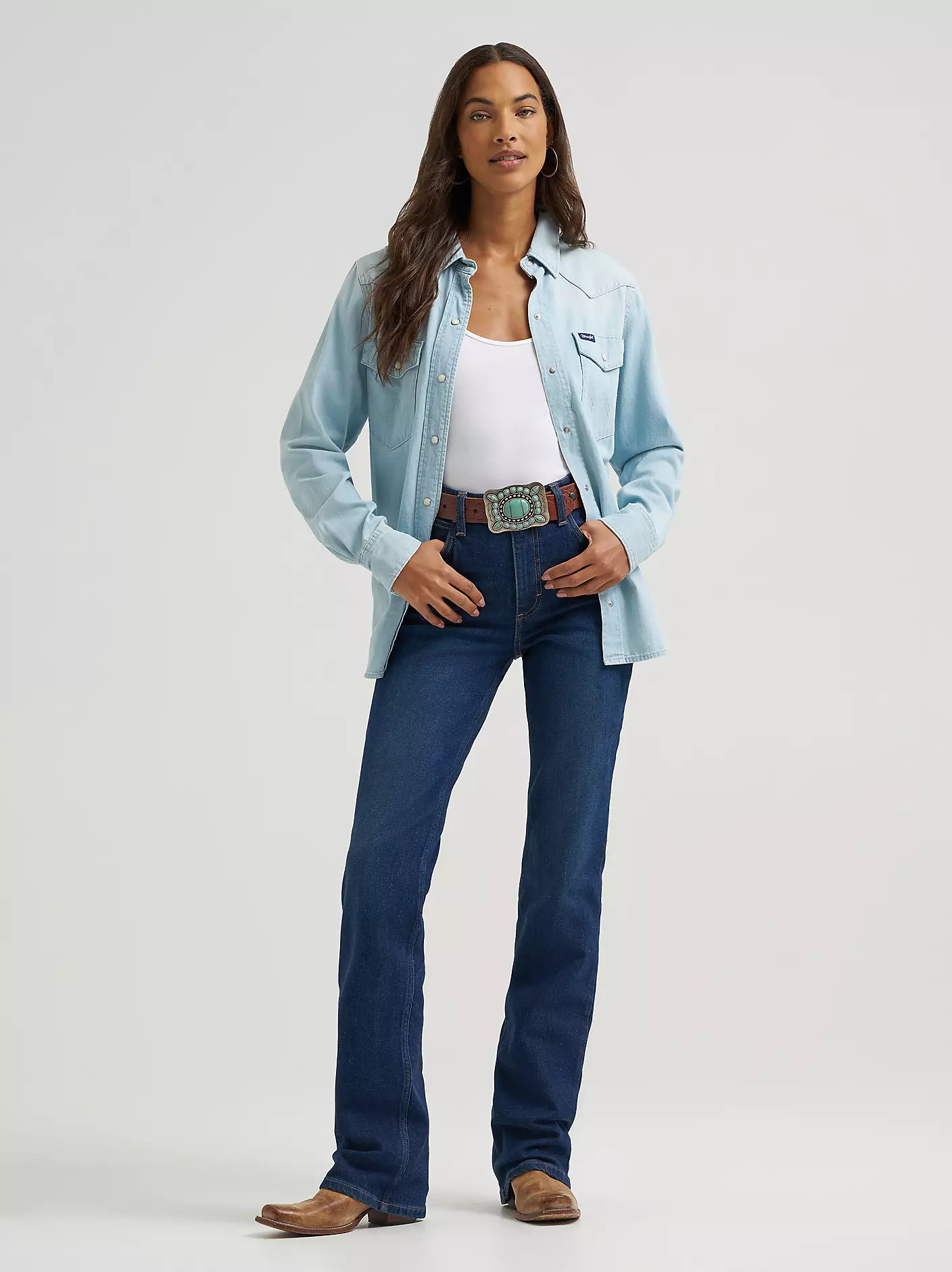 Riding has never felt or looked this good. Meet the Wrangler® Riding Jean Rodeo High Rise Boot, crafted for riders by riders. These jeans are crafted from a durable cotton blend that’s interwoven with Dyneema® fibers—15x tougher than steel yet light enough to float on water—for strength and lasting softness. They feature a high-rise silhouette with a contoured waistband for the perfect fit both in and out of the saddle. Fitted through the seat and thigh, they complement your curves and end in a classic bootcut leg opening that creates the perfect stack. You’ll also have the signature five-pocket styling and iconic details to keep your everyday look grounded in Western authenticity.