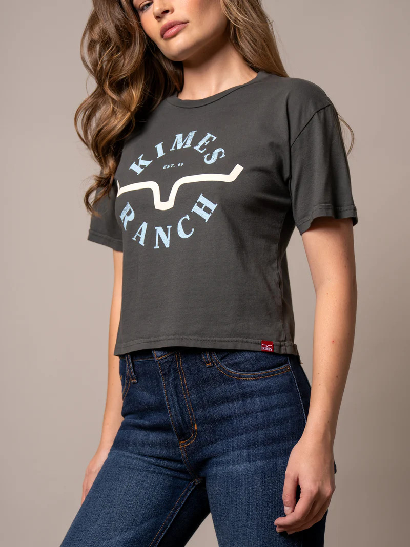 Made from 100% ring-spun cotton and pigment washed for a soft, lived-in feel, the Uncomplicated Cropped Tee delivers comfort from the first wear. The boxy cropped silhouette pairs perfectly with high-rise denim, especially styles from the Kimes Ranch women’s jeans collection, creating a balanced, flattering cowgirl look.