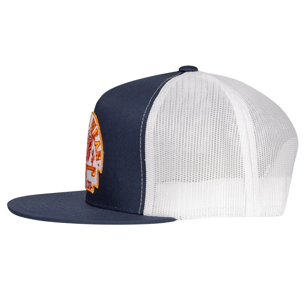 Elevate your Western style with the Lazy J Ranch Wear Navy & White Rusty Arrowhead Classic Five-Panel Trucker Hat. Designed for rugged durability and all-day comfort, this high-profile trucker cap features a unique rusty arrowhead graphic that adds a bold, vintage touch to its navy and white color scheme. Perfect for outdoor adventures, ranch life, or casual wear, this classic snapback hat is built for those who appreciate heritage-inspired fashion with a modern edge.