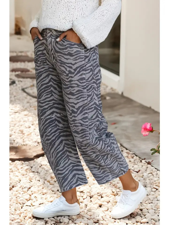 zebra stripe barrel jean