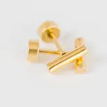 High-quality earrings made for girls with sensitive ears. Materials * Surgical grade stainless steel * 18K gold plated * Lead & nickel free * Always hypoallergenic Details * Flat screw-back * 8 mm x 2mm * Ultra-thin post measuring .8mm (20 gauge) * Waterproof - can be worn in the pool and bath