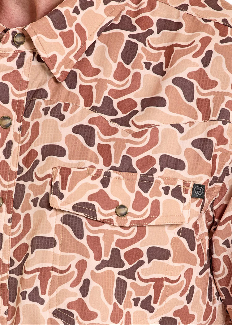 The TEK Western Brown Skull Camo Short Sleeve Shirt is a staple for any Western wardrobe. Made from 95% polyester and 5% spandex, it offers comfortable stretch and moisture-wicking, breathable properties, along with UPF 50 protection. Short sleeves and snap closures make it perfect for indoor or outdoor occasions.