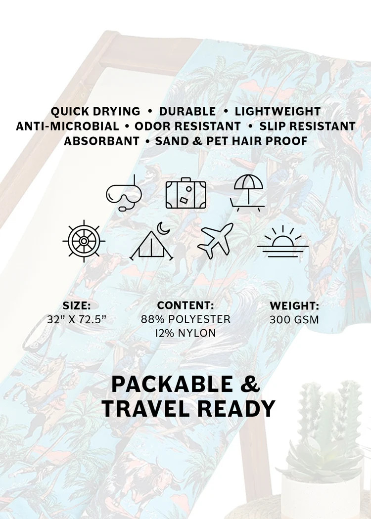Add function and style to every adventure with our Beach Cowboy Microfiber Towel. Designed with lightweight, quick-dry fabric, it's made from an 88%