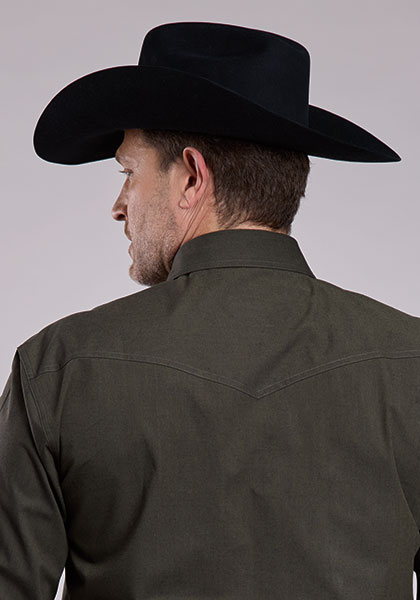 | Men's Long Sleeve Shirt * Snap Front * 1 Pt Curved Back Yoke * 1 Pt Curved Front Yoke Into Neck * 2 One Pt Pockets W/Curved Flaps * 3 Snap Cuff * Roper "R" Embroidery |