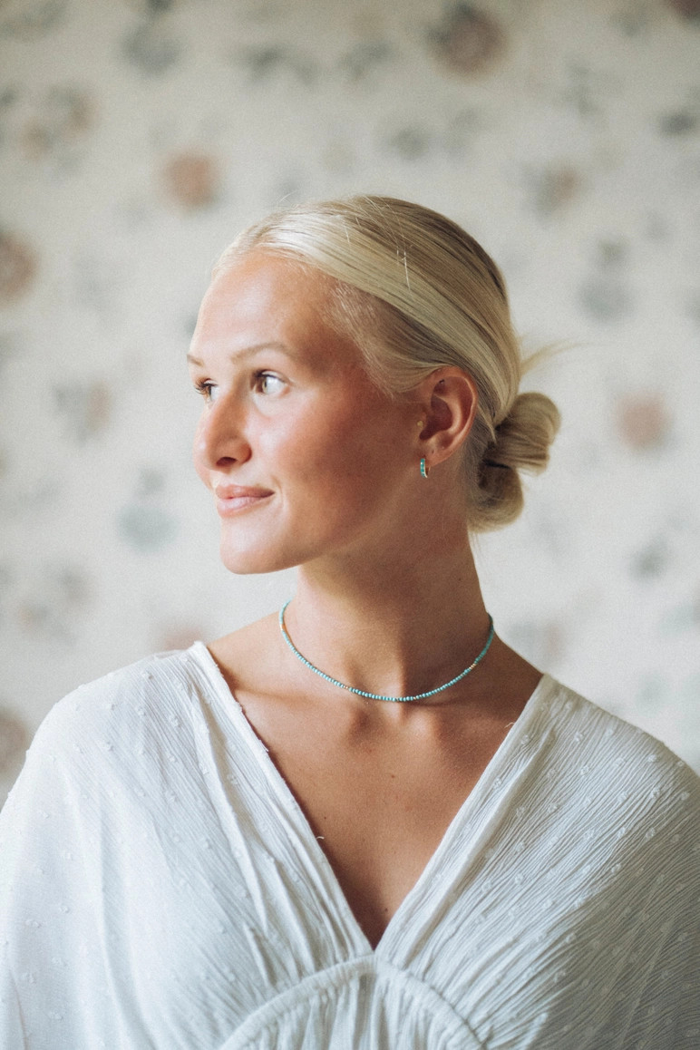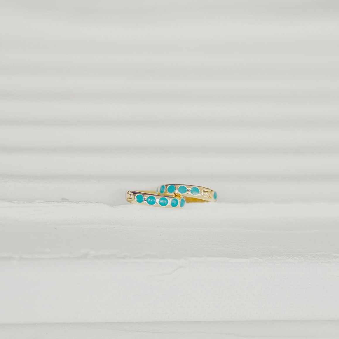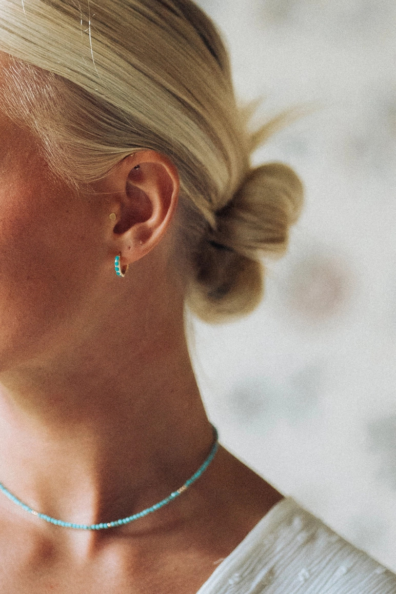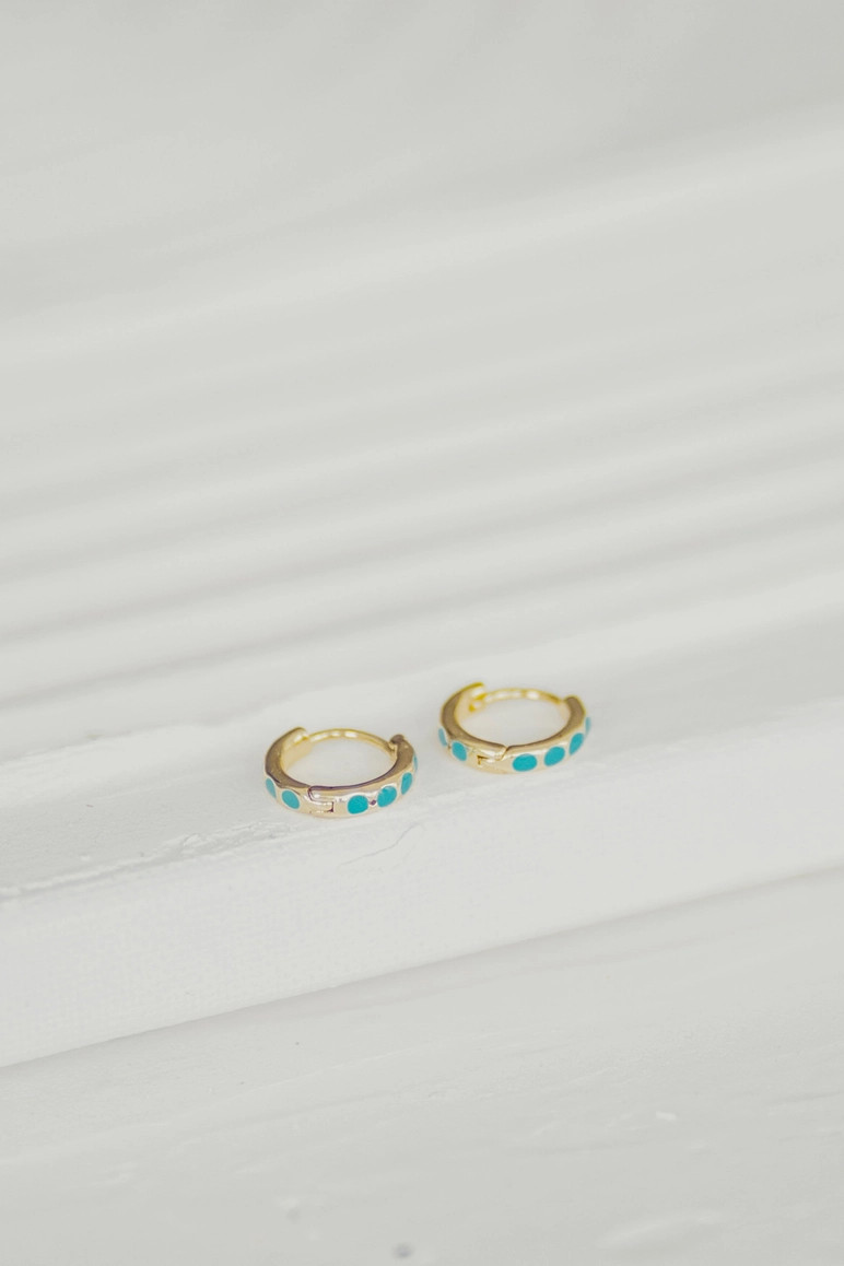 Product Description Turquoise and gold, a gorgeous color combination. 14k gold filled with semiprecious stones Comfortable huggie design