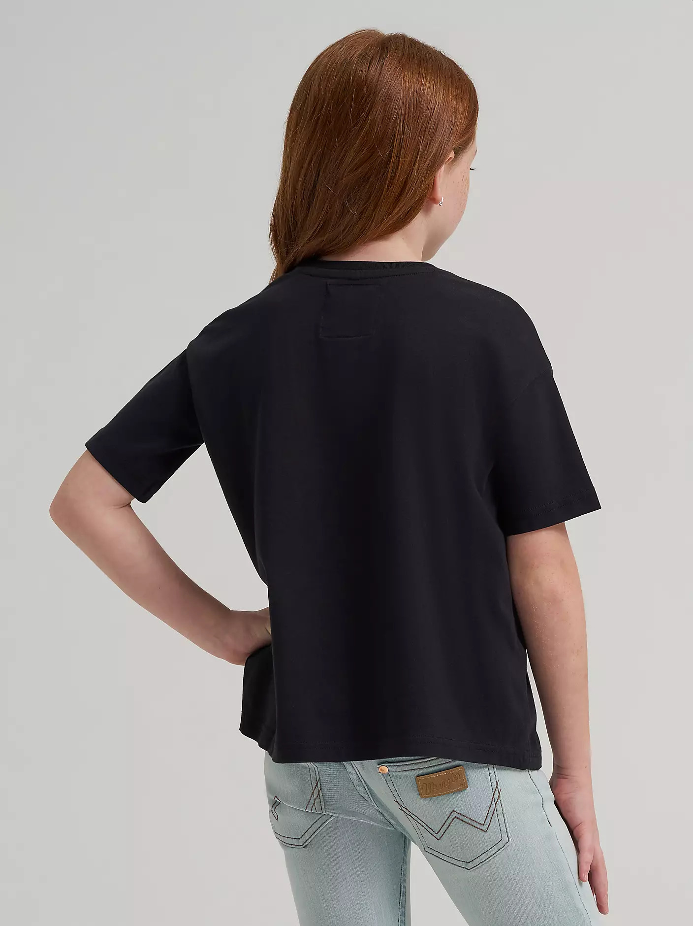 Lainey loves when her young fans chase their dreams and let their wild spirits roam free. The Girl’s Wrangler® x Lainey Wilson Jukebox Gold Oversized Tee will serve as your cowgirl's reminder that she was born to blaze trails. It comes with a retro-inspired graphic print full of red lettering, blue boots, and white stars, with lyrics nodding to the hit song, “Country’s Cool Again.” Cut with an oversized fit, this 100% cotton crewneck tee has a looser, longer, more laidback silhouette. She’ll also find a woven label with Lainey’s printed signature at the hem as a testament to how hands-on the country music star was in the creation of every collection piece, including this one.
