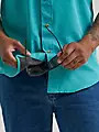 From the trail to town, the Wrangler® All Terrain Gear Men’s Performance Shirt delivers dependable performance in a classic look. Made from lightweight fabric, it keeps you comfortable on the move. A vented back enhances airflow, while moisture-wicking technology and UPF 40+ help you stay dry and shielded under the sun. Western-inspired details add that unmistakable look you love, while a built-in glasses cleaner ensures you're always ready for the next adventure. Whether you're hiking, fishing, or just kicking back, this shirt is made to keep up.