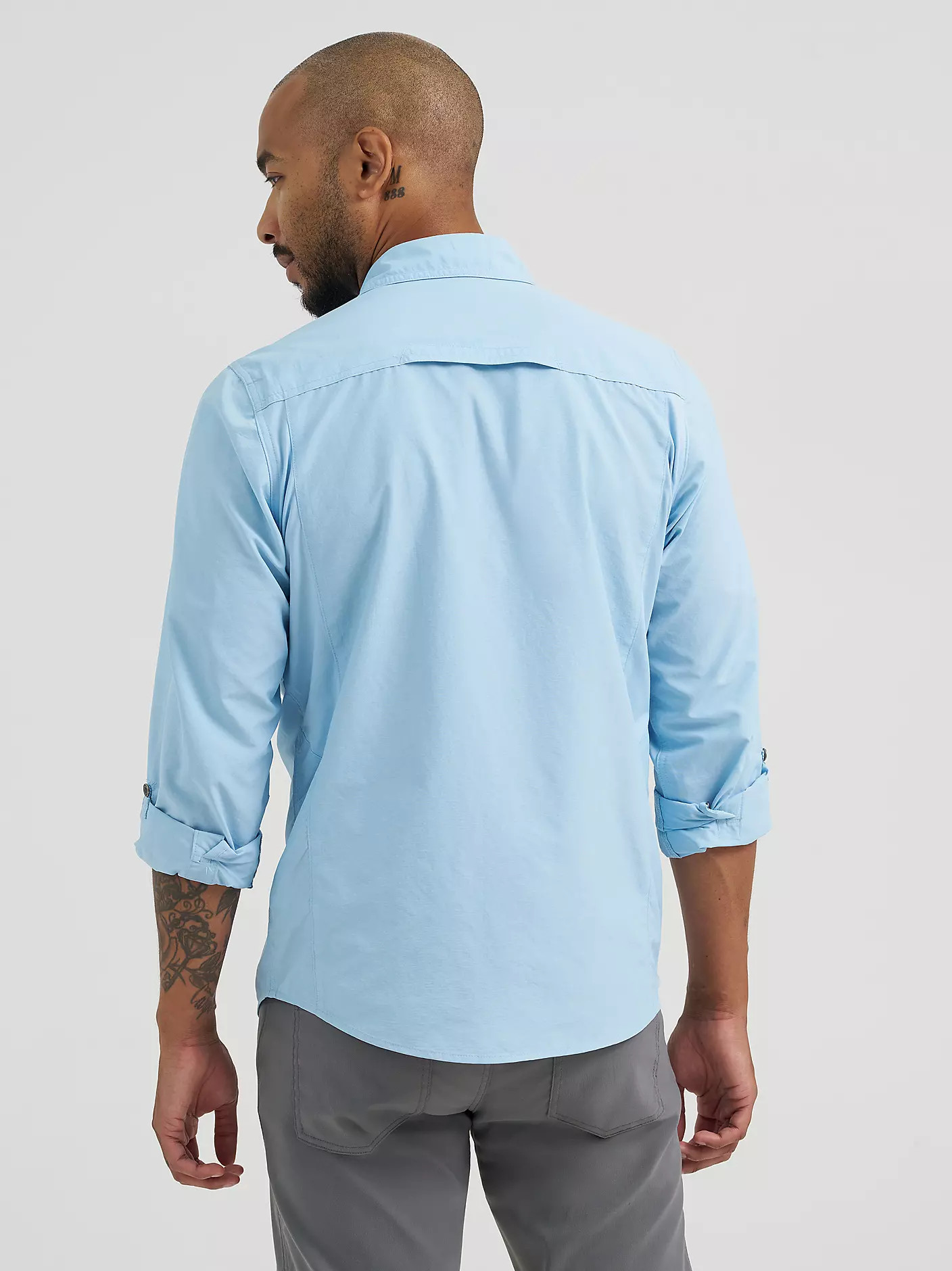Wrangler ATG™ is a collection of everyday outdoor styles that will keep you dry and comfortable in all conditions. This mix material shirt has it all: style, functionality, and protection. Its mixed material design incorporates contrasting, breathable knit panels at the sides and sleeves for optimum comfort and mobility. This shirt features a regular fit with convertible roll-up back capping on the sleeves, moisture-wicking properties, and UPF 30 protection for those sunny days. We also added a utility zip pocket and a glasses cleaner at the hem to ensure you are ready for wherever the day takes you.